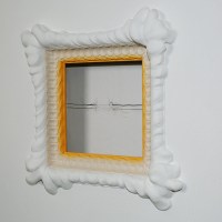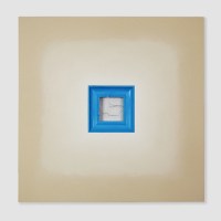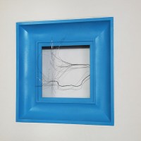 In these works, found-object picture frames are placed centrally within the naked stretched canvas, piercing it and thus framing a literal void rather than depicting a window to the world – which has been the underlying essence of most western painting since the Italian Renaissance. Thus, a painting or its simulacrum is “made” and then in opposition to expectations, “unmade” by placing a frame centrally within it rather than around it. Rejecting illusion, these works are instead rich in allusion. They suggest a dialectical conversation between absence and presence, between being and becoming. By reconstituting the equation between frame and canvas they create a space where the question of, what Painting can be, is manifested as a poetic enigma.
